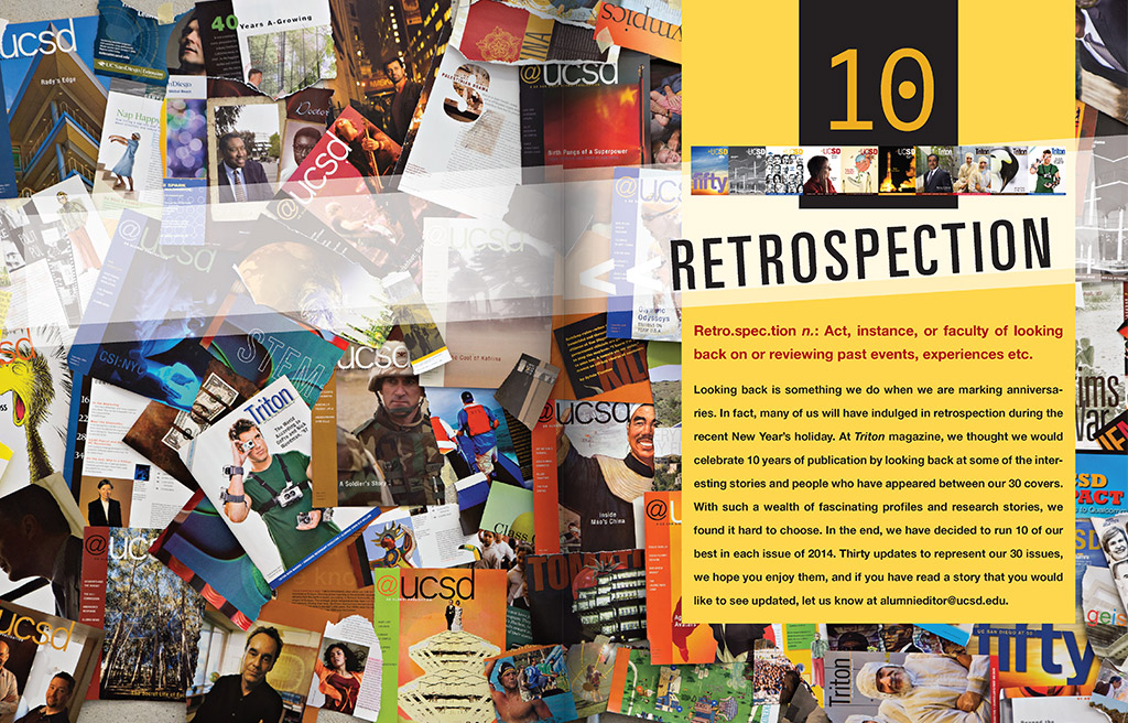 With iconic photography and illustrations, Triton was a glimpse into the world of research and discovery that happened daily at UC San Diego. Current faculty research along with alumni successes were showcased for the entire community to be able to stay in touch with, and stay proud of, the university that they called home.